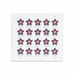 The tri-colored ribbon, folded into a patriotic symbol, is intended to evoke the connectedness of the American people. Aaron Draplin, who designed the stamp, created the artwork first by sketching the design by hand and then rendering it digitally. Greg Breeding served as the project??s art director.