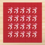 Geometric shapes come together to form a highly stylized white bird carrying a pink envelope sealed with a red heart.