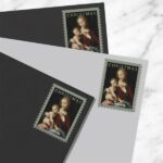 Depicting the tender bond between a mother and her child, interpretations of the Virgin Mary with the Christ Child take innumerable forms in the Christian art of the Italian Renaissance. This stamp features Virgin and Child, an oil-on-panel painting from the first half of the 16th century.